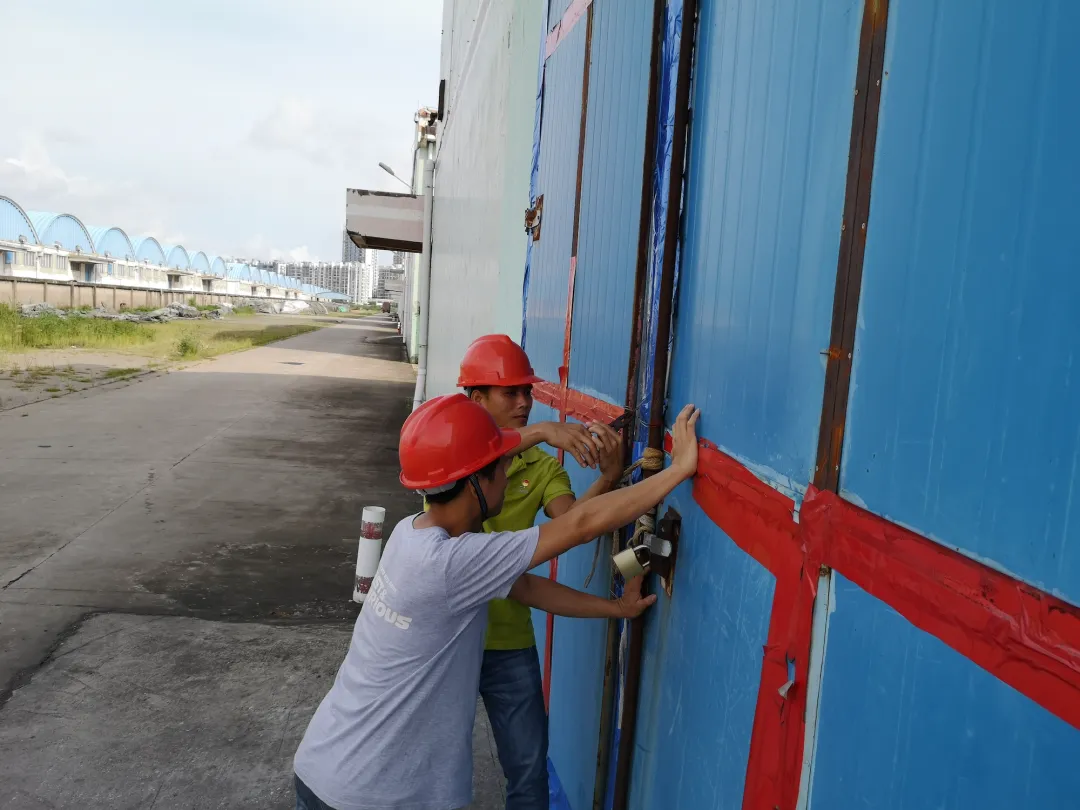 廣西五礦欽州分公司第一時間啟動防汛防臺風應急處置預案,成立應急指揮小組,深入倉庫、宿舍樓及外租區域全面排查安全隱患,修補漏水屋面、修剪綠化樹、清理排水管道、準備防臺物資等,消除可能引發安全事故的隱患。同時進一步強化對內外部租戶的責任落實和防風防雨的具體要求,嚴陣以待,監督指導租戶落實有關防護措施,確保在臺風和汛情來臨時能夠迅速有效地應對,最大限度地減少災害帶來的損失。