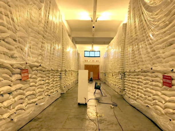 為提升養護質量,欽州公司組織骨干力量改進食糖倉庫除濕工藝,在總結歷年來食糖養護經驗的基礎上,創新采取密封式、跺對跺環流除濕工藝。2022年食糖養護用電量明顯減少,食糖養護質量較往年有進一步的提高,得到了廣大客戶的廣泛好評。